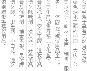 公司秉承“質量為本、我們要做的是唯一、而不是第一”的經營服務理念,堅持以誠信為先、服務至上、創新發展為立業之本,以鄭重的承諾和完善的服務為信譽保證,不斷專研、開發、生產出盡善盡美的高科技殯儀產品...